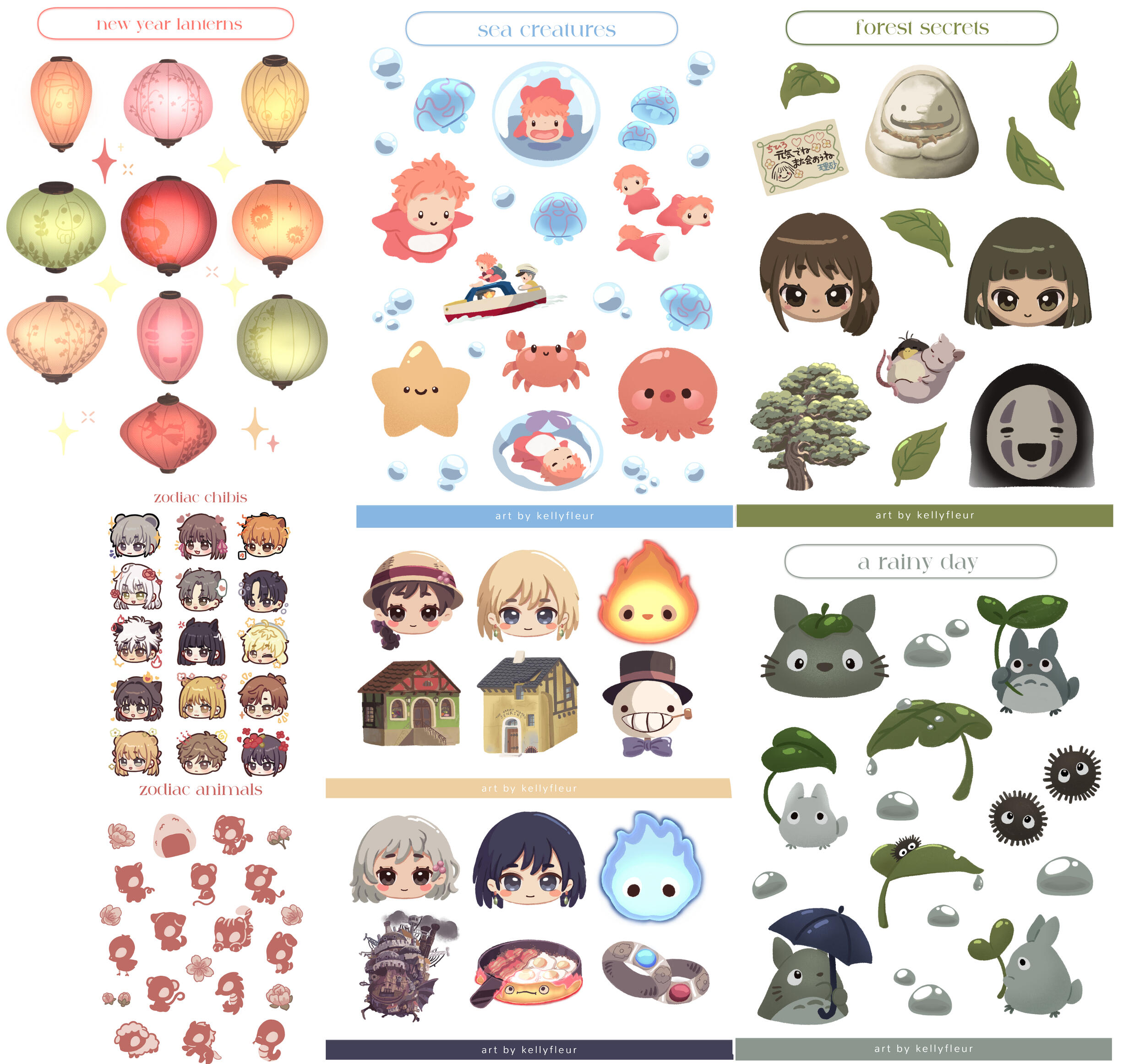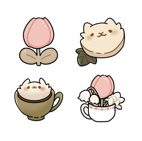| Four Flower ✿ ✿ ✿ ✿ | • fleur mail with an art print of choice • fleur mail with a sticker sheet • banner chibi (colored) |