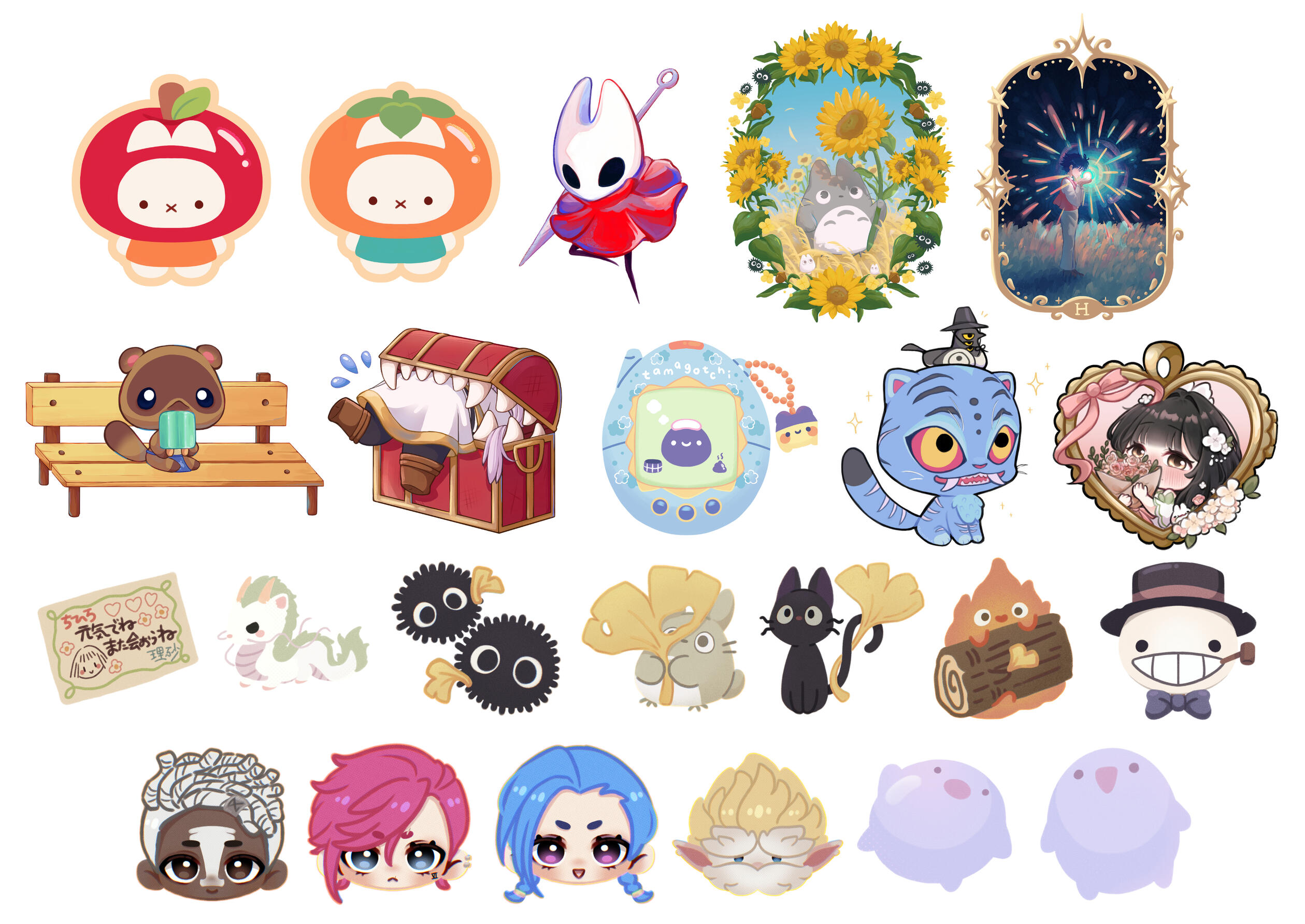| Five Flower ✿ ✿ ✿ ✿ ✿ | • fully rendered chibi commission • a frame by frame animated emote (simple) • 2 static emote set • a live2d animated emote (simple) |